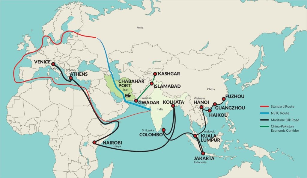 On May 16, 2002, an agreement was signed by Russia, Iran, and India for the NSTC project. This project involves the establishment of a corridor starting from Mumbai or other ports in India, crossing the Indian Ocean and Oman Sea, and reaching Chabahar on the southern coast of Iran. From there, the corridor will utilize Iran’s railway system to extend from south to north, splitting into three branches. The first branch will lead to Turkmenistan and Kazakhstan before ultimately reaching Russia. The second branch will pass through the Caspian Sea and end at Astra Khan port in Russia, located along the spans of the Volga River. The third branch will traverse through Caucasus territories including Azerbaijan or Armenia, Georgia, and finally reach southern Russia.